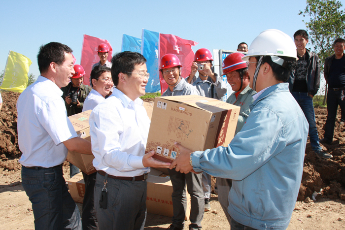 在貫通儀式上,孫中華主任對中復新水源的工作表示肯定,并希望中復新水源再接再厲,抓緊做好管道施工沿線(xiàn)的土地恢復和道路修復,為老百姓交上一份滿(mǎn)意的答卷,繼續高度重視安全生產(chǎn),狠抓工程質(zhì)量,按期完成工程的各項節點(diǎn)任務(wù),為徐圩新區建設添磚加瓦。在雙節來(lái)臨之際,孫主任向在場(chǎng)的建設單位和施工單位的同志們表示節日的問(wèn)候,并送上慰問(wèn)品。