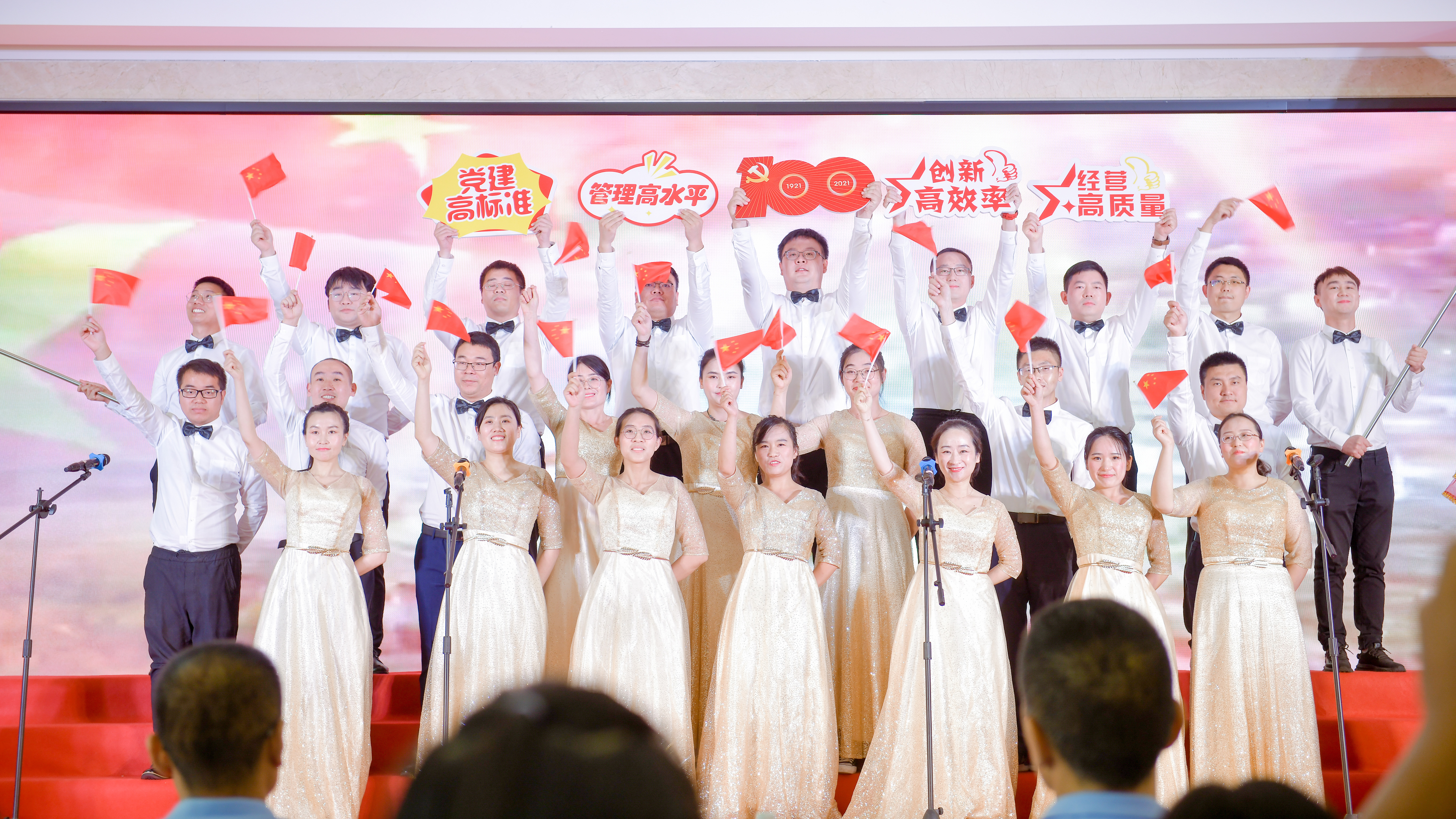 一次次充滿(mǎn)激情的演唱不斷點(diǎn)燃現場(chǎng)氣氛,一曲曲動(dòng)聽(tīng)悅耳的歌曲不斷贏(yíng)得陣陣掌聲。公司全級次15個(gè)黨支部以洪亮的歌聲、特色的服飾、靚麗的面貌、飽滿(mǎn)的熱情獻禮建黨百年,深情歌頌中國共產(chǎn)黨的豐功偉績(jì),表達對偉大祖國和共產(chǎn)黨的熱愛(ài)。經(jīng)過(guò)激烈角逐,第一黨支部以總分19.58分的好成績(jì)列居第一。