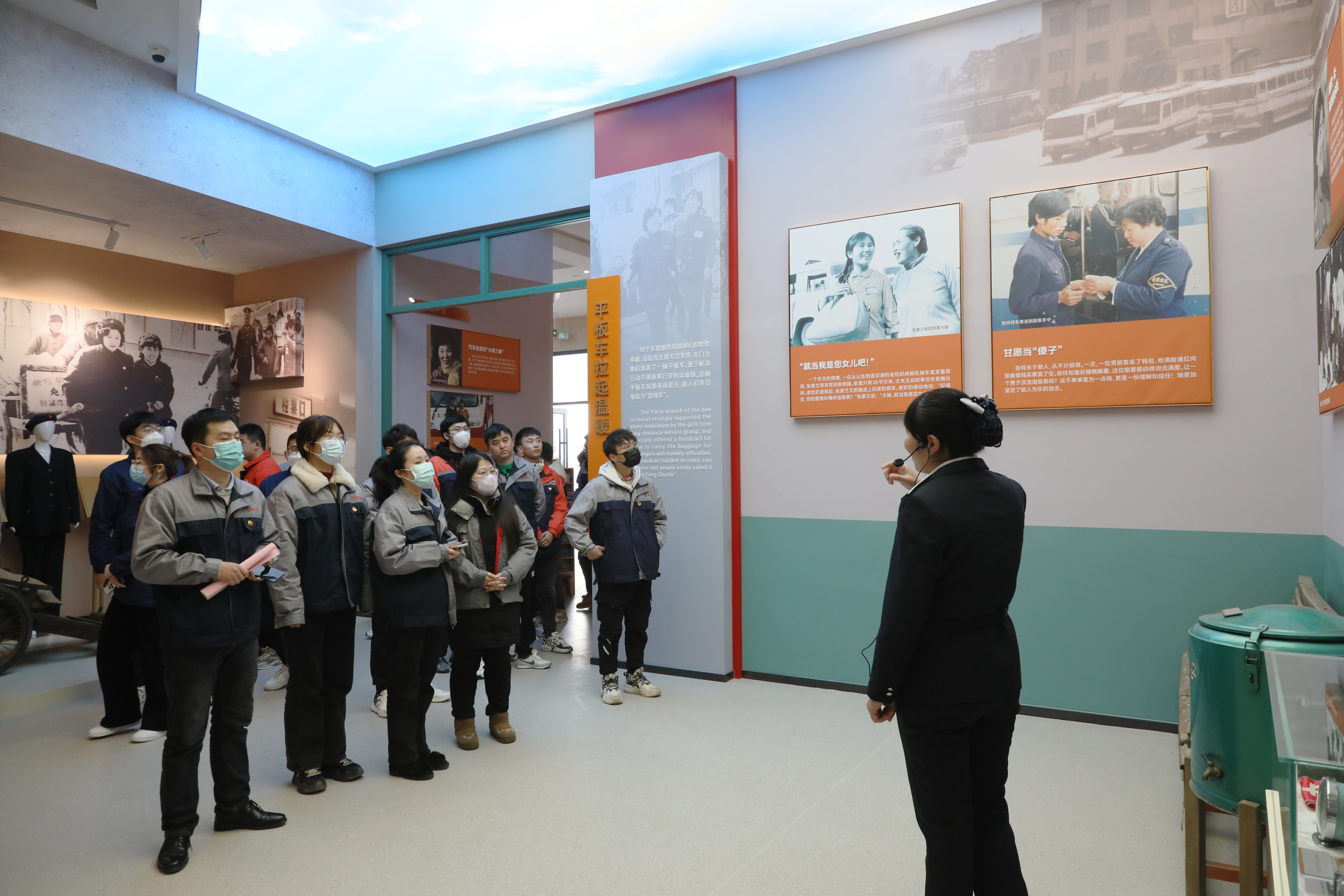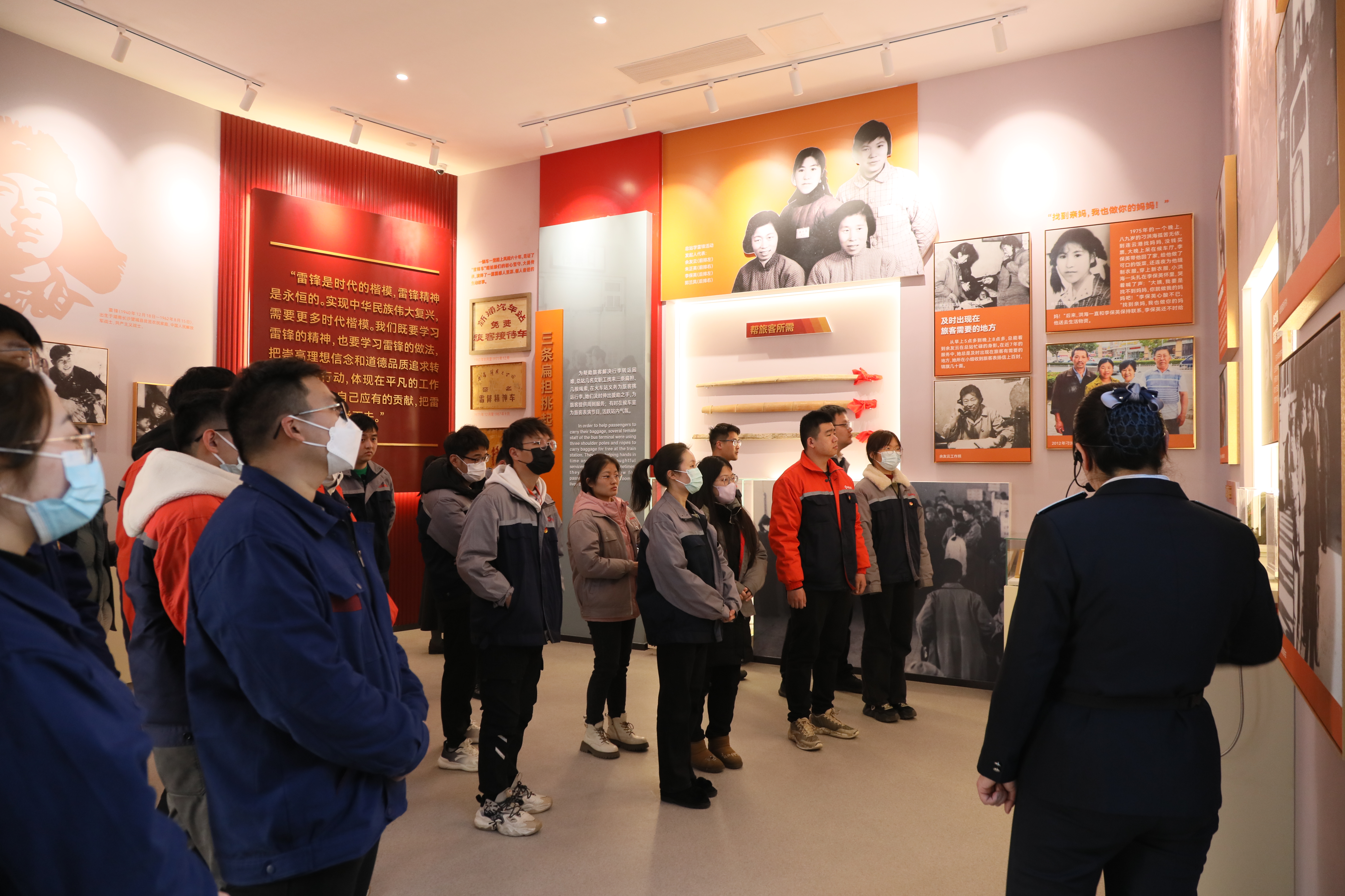 走進(jìn)陳列館,大家沿著(zhù)“雷鋒車(chē)”半個(gè)多世紀的車(chē)轍,跟隨解說(shuō)員的腳步,通過(guò)觀(guān)看文字、圖片、雕塑和影像等,詳細了解“雷鋒車(chē)組”60年來(lái)的先進(jìn)事跡。一件件承載歷史厚重感的文物、一段段詳實(shí)的視頻資料、一幅幅鮮活生動(dòng)的影像照片,詮釋了“雷鋒車(chē)”組“寧愿自己千般苦,不讓旅客一時(shí)難”的誓言,彰顯了六代“雷鋒車(chē)手”堅持為民服務(wù)、無(wú)私奉獻的深厚情懷。參觀(guān)結束后,全體人員在團委委員陳震的帶領(lǐng)下重溫入團誓詞,責任意識和奉獻意識得到進(jìn)一步升華。